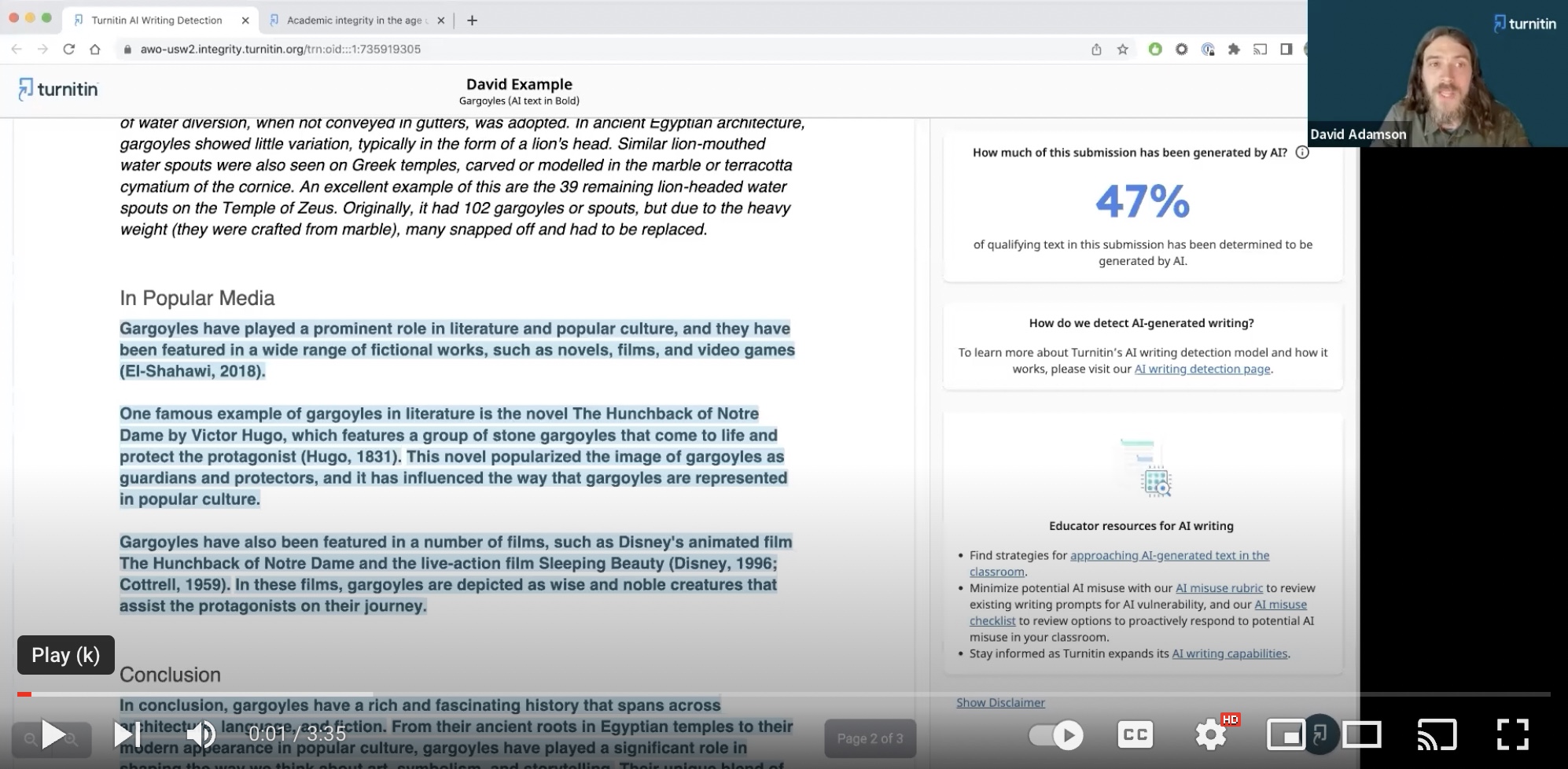 Watch this short video where David Adamson, an AI scientist at Turnitin and a former high school teacher, explains more about false positives in a sentence.