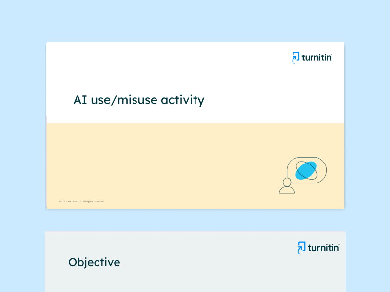 This deck is intended for use with students to facilitate conversations with students regarding the use of AI writing tools. It is best used in conjunction with the AI use/misuse activity guide for more detailed suggestions on ways to implement the activity. The situations described on each slide allow for discussion on what might constitute AI use or misuse for a particular assignment or within the educator's classroom or institution. There is no definitive answer key to guide discussion as each situation presented might be either or both depending on educator guidelines or institution policy. Discussion is encouraged to determine what might need to occur in order to deem the described situation as good use of AI writing tools.