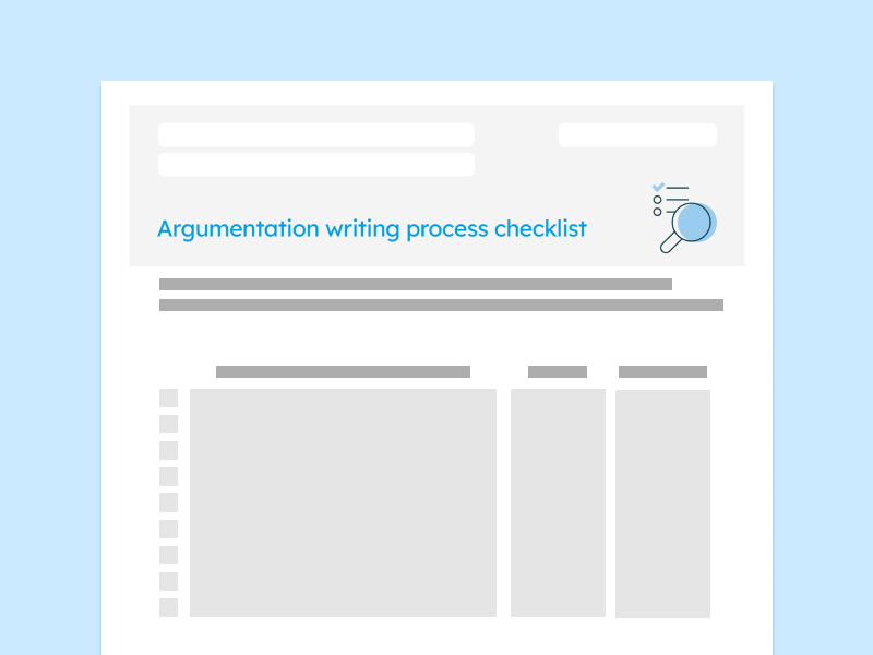 This student-facing checklist will aid students in identifying the specific steps of the writing process as it applies to argumentation. The inclusion of spaces to indicate due dates and completion dates allows students to self-monitor their process and their progress as they complete assignments. The checklist mirrors the process outlined in the lesson presentations.