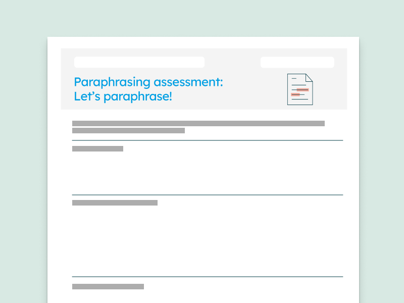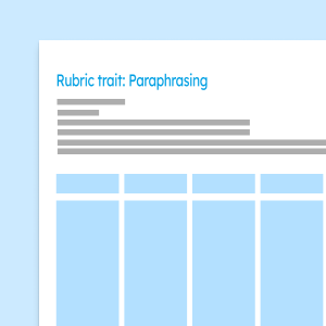 This assessment is part of the "Teaching academic integrity: Paraphrasing" instructional resource pack. It may be used to assess students' abilities to accurately paraphrase a passage. Choose passages at their skill levels and ask them to paraphrase that passage. Build metacognitive skills by having students explain the steps they took to paraphrase. Consider appplying the rubric trait to the assessment.
