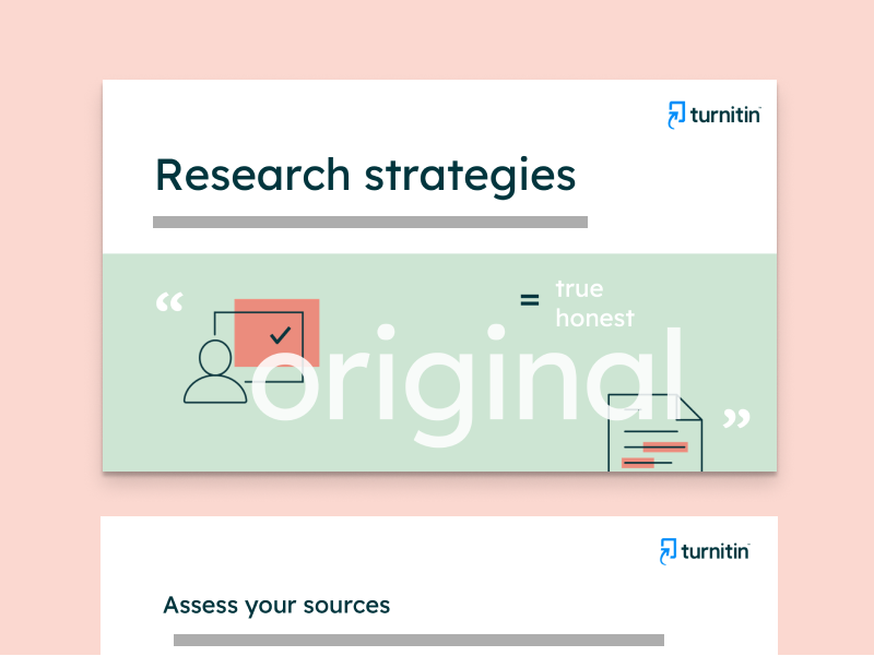 Presentation with instructional support to understand research strategies.