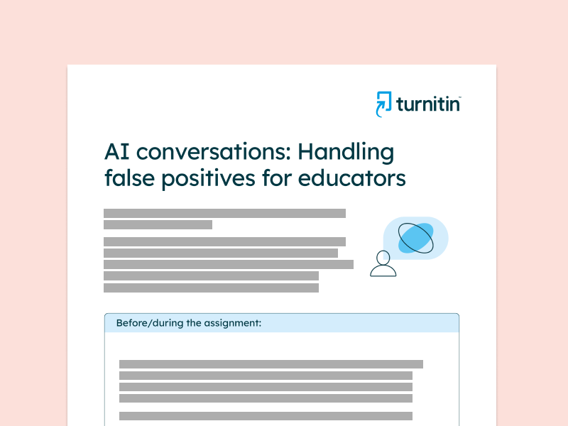 While the risk for encountering a false positive when using AI writing detection on student work is small, it is important to plan for how to approach the conversation with students. This guide shares strategies educators can consider before and after submissions to help when confronted with a false positive.
