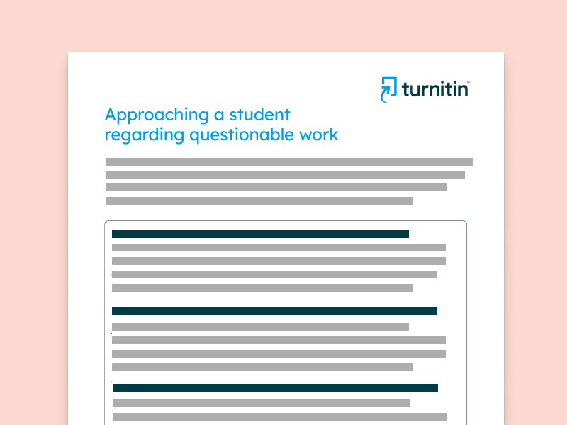 This educator-focused guide provides suggestions for approaching a student regarding questionable work that they may have submitted. Following the six steps on this guide can help to facilitate open, honest conversations that avoid either party becoming overly defensive during this difficult type of interaction. Pair these tips with Discussion starters for tough conversations for the most effective conference outcomes.