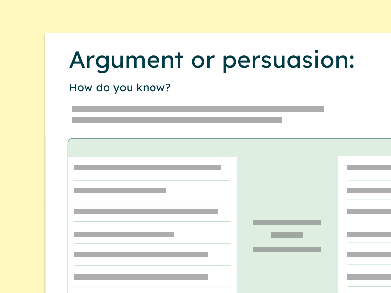 This handout is intended to help students and educators differentiate between two genres that are often confused: argumentation and persuasion. Best used near the beginning of the unit, students will want to consult this handy reference often in order to be certain that they understand the demands of each as they complete assignments. Use to solidify the discussion after the initial use of the Argumentation with integrity anticipation guide and/or the Argumentation with integrity: Anticipation guide presentation or Argumentation or persuasion poster.