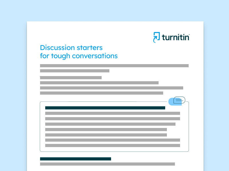 This educator-focused guide provides discussion starters that can be used to facilitate conversations regarding student work. Use these topics and conversation jump starters to help foster a dialogue focused on growth when approaching a student regarding questionable work that they may have submitted. Pair the suggestions in this document with the six steps outlined in Approaching a student regarding questionable work to facilitate the most effective conference outcomes.
