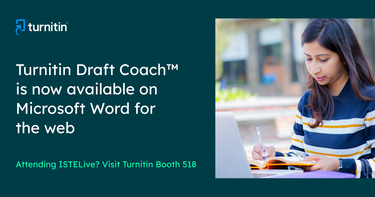 Learn more about Turnitin Draft Coach. ISTELive 22 attendees can join a learning session or speak with a specialist in-person at Turnitin booth 518.