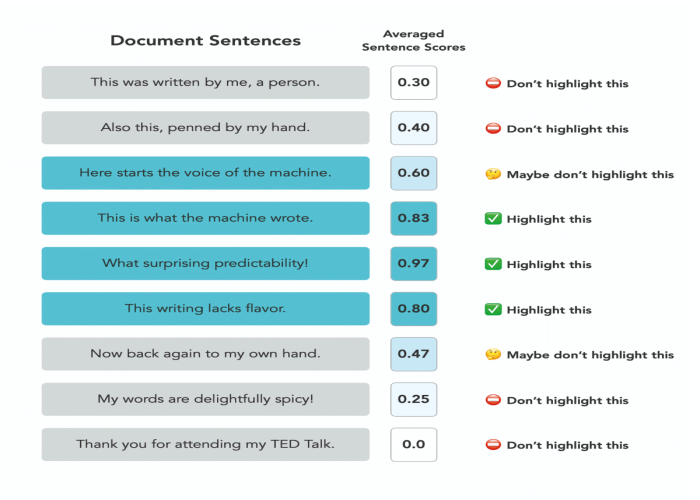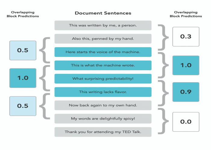 Using the average scores of all the segments within the document, the model then generates an overall prediction of how much text in the submission we believe has been generated by AI.