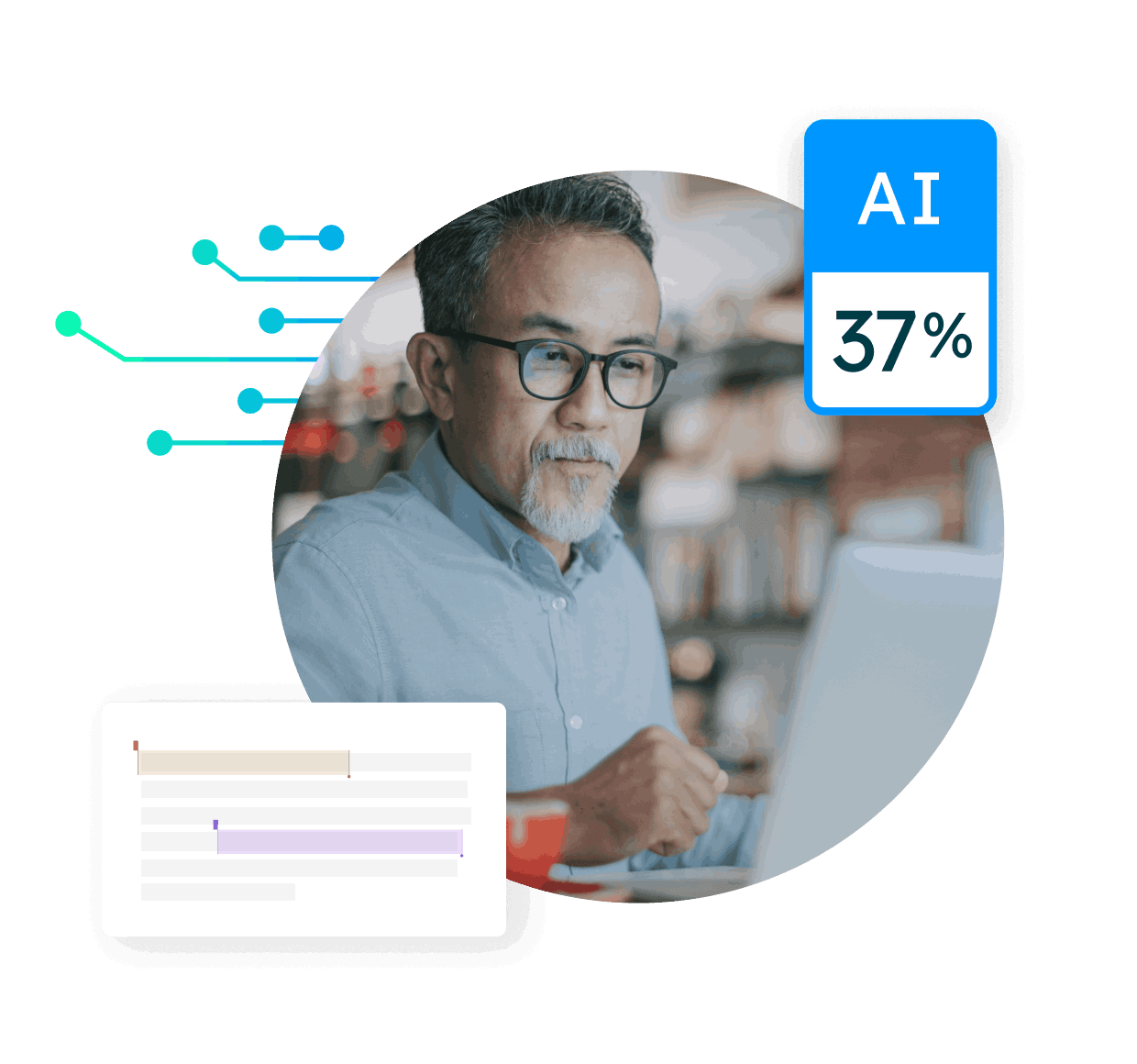 Using the average scores of all the segments within the document, the model then generates an overall prediction of how much text (with 98% confidence based on data that was collected and verified in our AI innovation lab) in the submission we believe has been generated by AI. For example, when we say that 40% of the overall text has been AI-generated, we’re 98% confident that is the case.