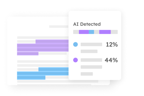 The AI writing indicator shows an overall percentage of likely AI-generated text in a student’s submission, with a report highlighting text segments our model predicts were AI generated.