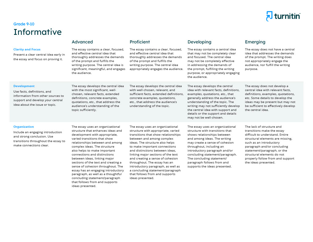 Offer 9th-10th Grade students a structure for informative writing with this standards-aligned rubric developed by educators for Feedback Studio.