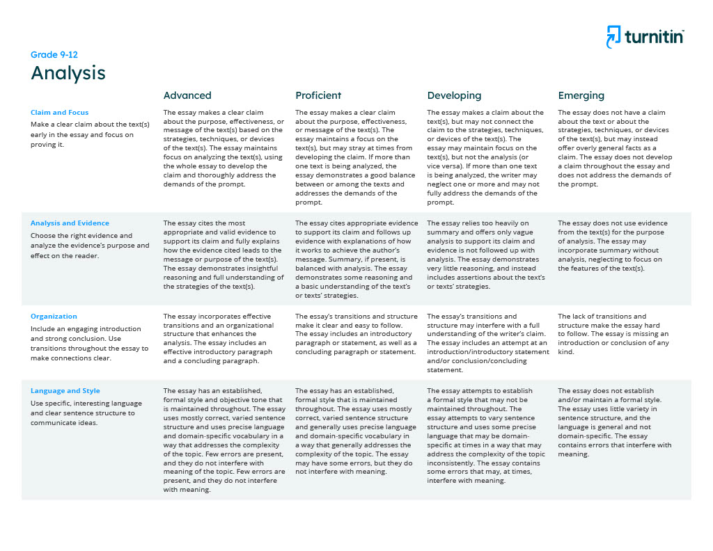 Offer 9th-12th Grade students a structure for analytical writing with this standards-aligned rubric developed by educators for Feedback Studio.