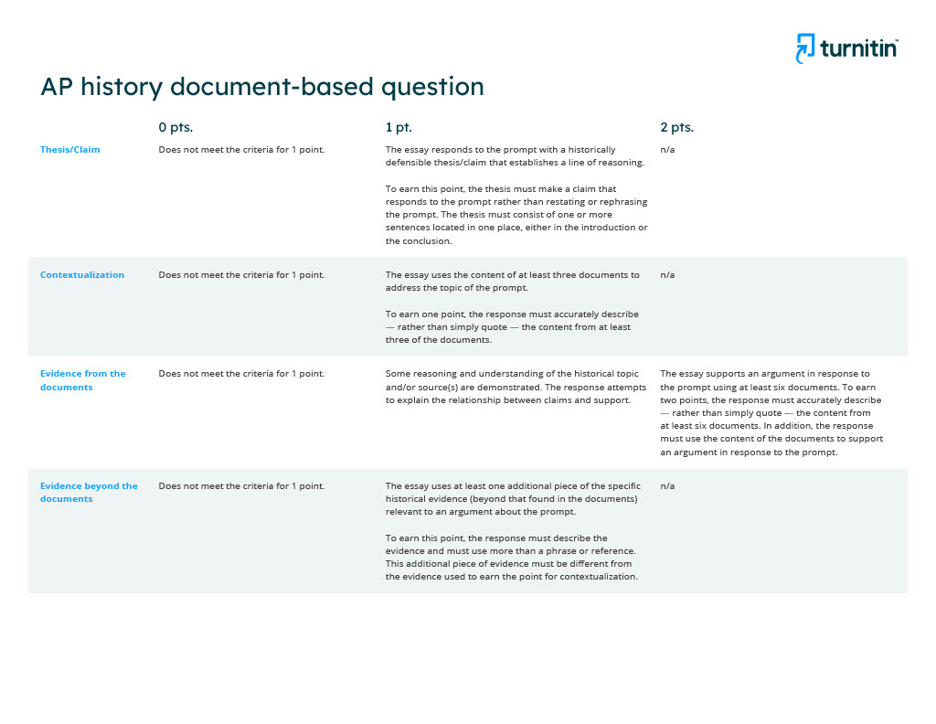 Rubric aligned to the 2019-2020 scoring guidelines for the Document-based Question of the AP United States History exam.